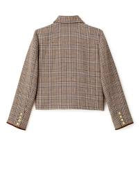 • Textural Depth: Multicolor wool-blend plaid with braided contrast trim
