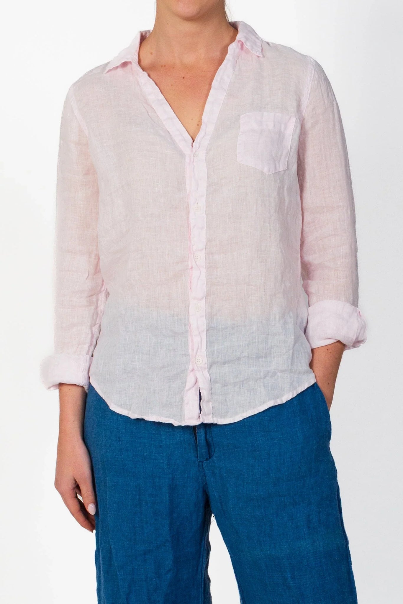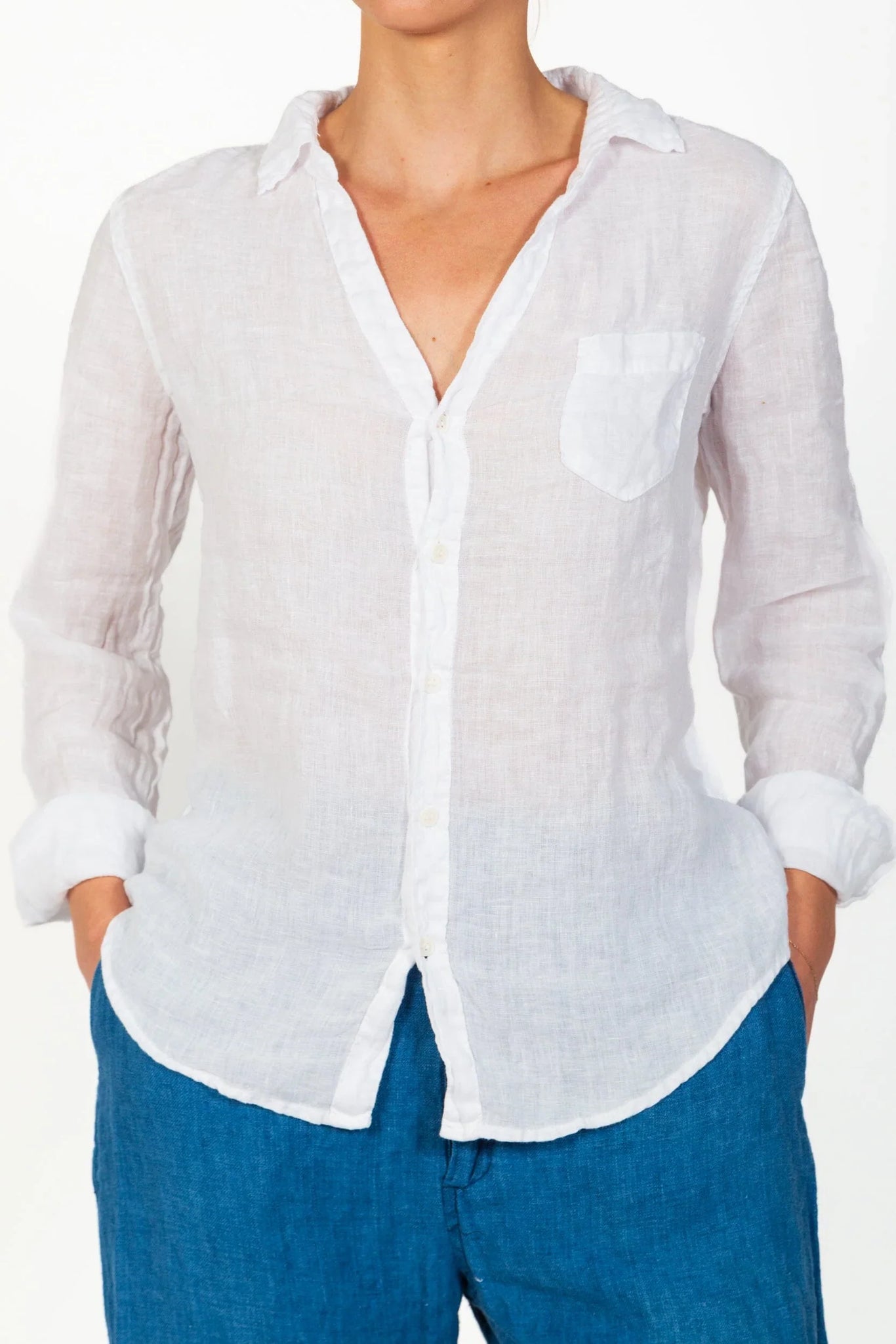 A slightly fitted shirt with a center back seam detail. Sloane features a built-in v-neckline with a shirt pocket.
