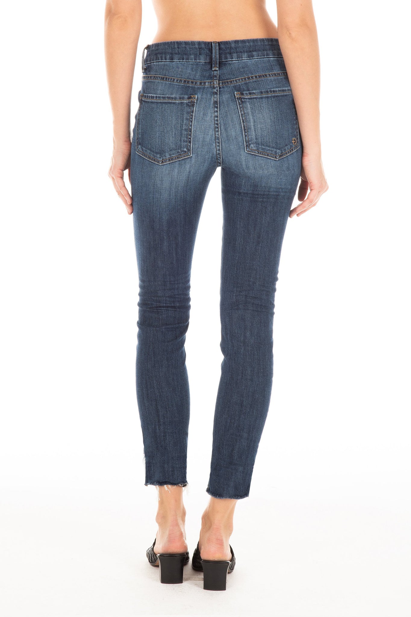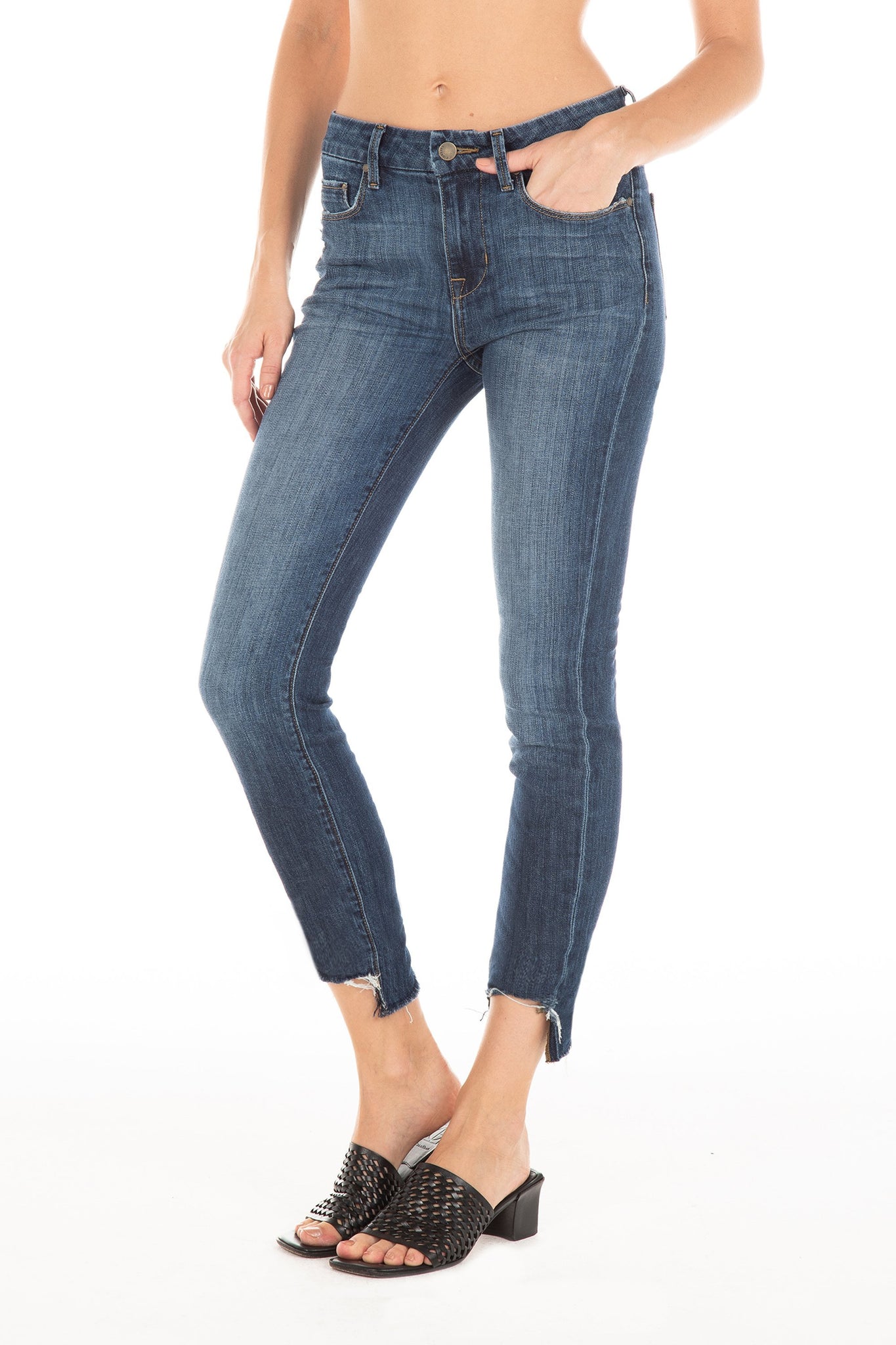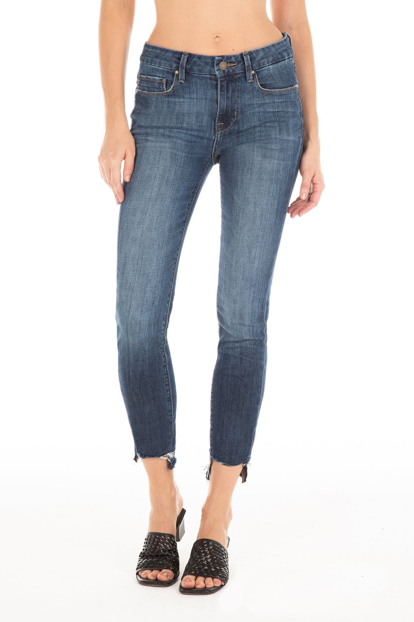 The mid rise ankle-grazing skinny with an update. Featuring an asymmetrical, raw hem, this jean still feels classic thanks to the dark, versatile wash, and shows off your cute shoes perfectly.