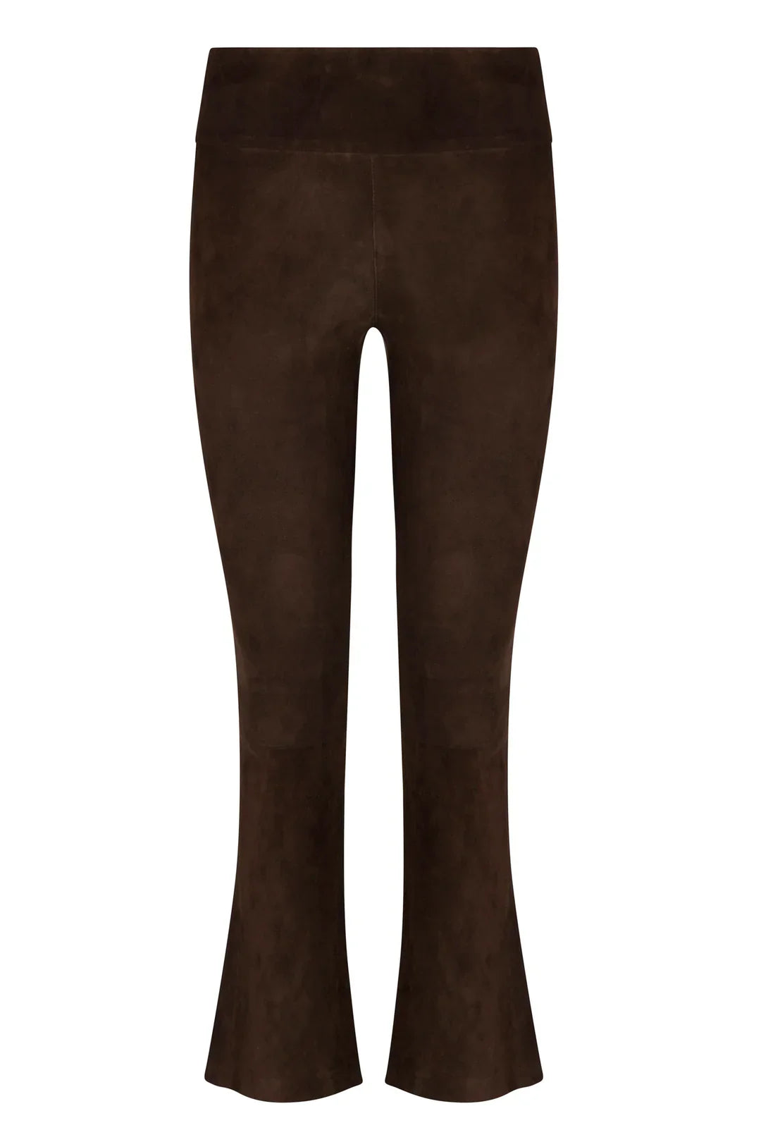 Our buttery-soft Ankle Flare Leggings feature a skin-tight fit with a subtle kick-flare at the ankle for a naturally elongating look. Made from our plongé suede leather, these pants feel like a second-skin due to their extreme breathability technology, which provides maximum mobility and comfort, while regulating your temperature all year round, so they'll be the first leather pants you can wear in the summer without overheating. Fit with our signature high-waisted Japanese elastic waistband, which provide a figure-sculpting fit that conform to your body-- another reason these pants will become your forever-favorite.