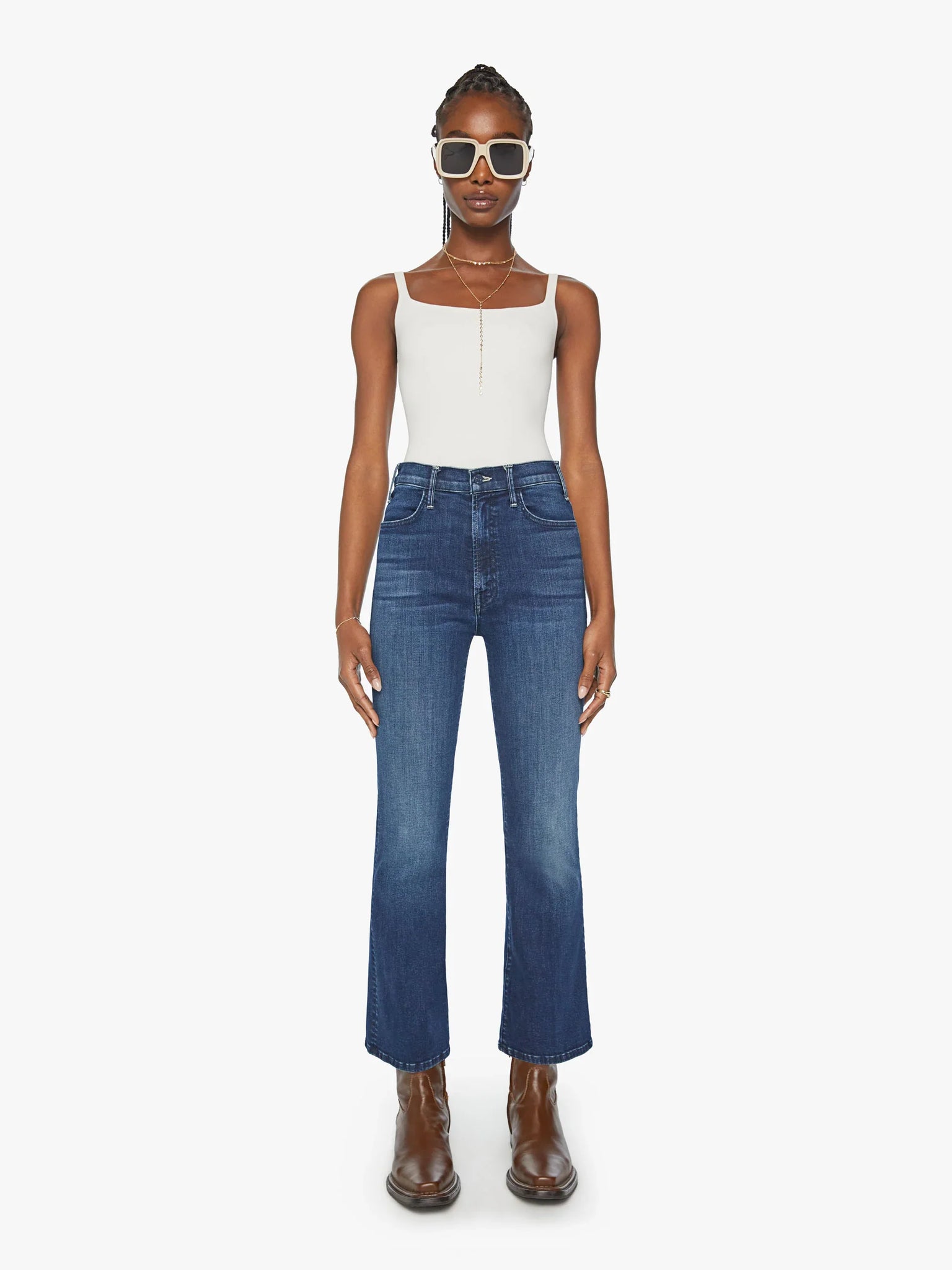 Ripe for the picking. This high-rise bootcut has an ankle-length inseam and a clean hem. Made from stretch denim, Heirloom is an dark-blue wash with subtle whiskering and fading. Only the finest.