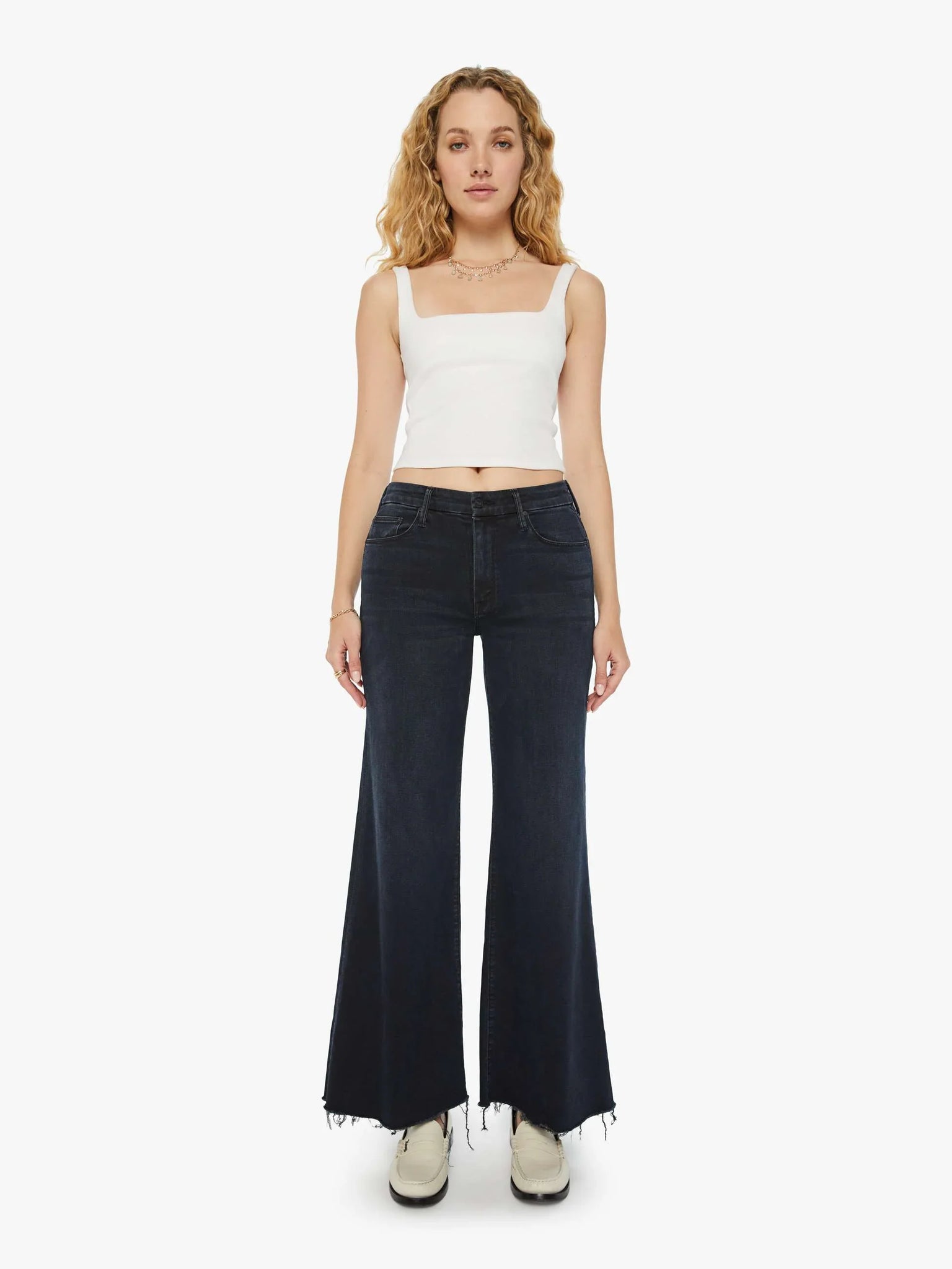Imagine the pasta-bilities. This iconic high-waisted wide leg has a 31-inch inseam and a frayed hem. Made from denim with a touch of stretch, Night In Venice is a dark denim wash.