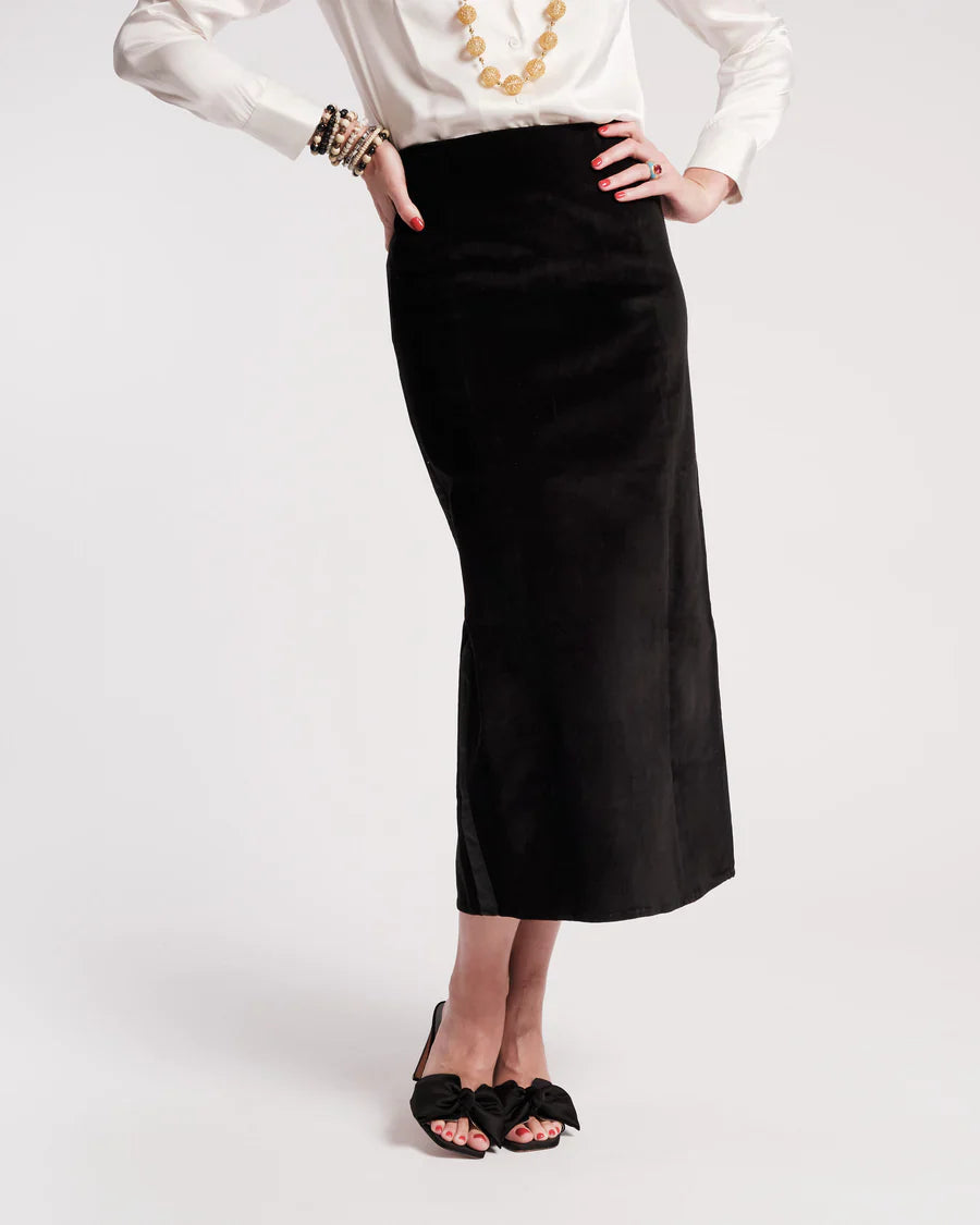 Embrace the season with the Tuxedo Velvet Maxi Skirt! This beauty flaunts a luxurious velvet fabric that feels as good as it looks, complete with a chic high-rise pencil silhouette. Pair it with the matching tuxedo jacket for a show-stopping ensemble, or mix it up with the Katherine Silk Top for a winning combo.